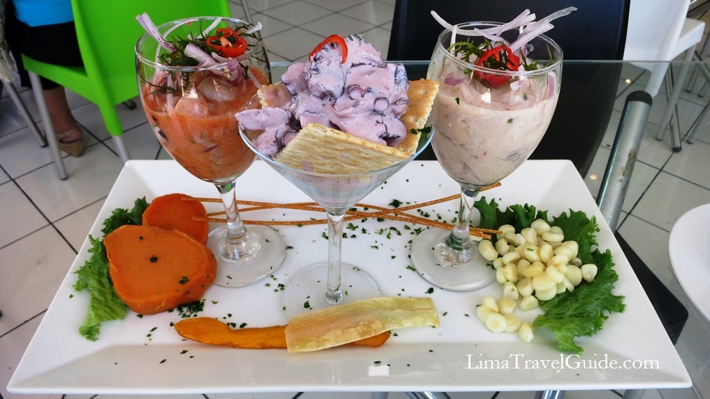 Ceviche’s rarely served with creamy sauces and calamari as in the first pic. And if you skip the cancha, ceviche’s a super-healthy plate. Raw fish is loaded with Omega 3 fatty acids and protein. Lemon juice adds your RDI of Vitamin C. Sweet potatoes are so low on the glycemic index they’re not considered a starch. Seaweed is a common ingredient in fat burner pills. All that healthy goodness and it’s delicious!