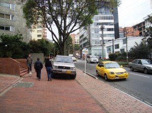 At 13:00 Peñalosa mentions how upper income car owners in developing cities, thinking they’re more important, park on sidewalks. Here’s a shot of that from Chicó: