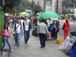 Upper income citizens with cars aren’t the only ones who take more than their fair share of public space. Some of the lowest income citizens, street vendors, steal space specifically in congested areas. Street vendors create bottlenecks to increase exposure to their trinkets. By laying out their big blanket of widgets in the sidewalk, they force pedestrians over and into the bike path in many areas.