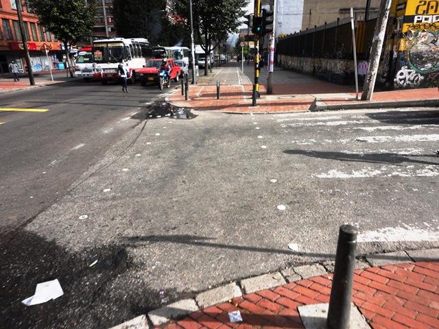 Most pedestrians violating the bike paths’ space don’t result in wrecks or drama. For the vast majority of violations, the cyclist is inconvenienced into slowing to walking speed until the pedestrian realizes his error and moves, or the cyclist passes. By the end of my time in Bogota, for these instances I had developed the habit of calling out “¡Ubíquese!”, a Colombianism that literally translates to “locate yourself” but is used as “figure out where you’re at.” You can imagine how surprising it’d be for a Colombian to hear in a foreign accent.