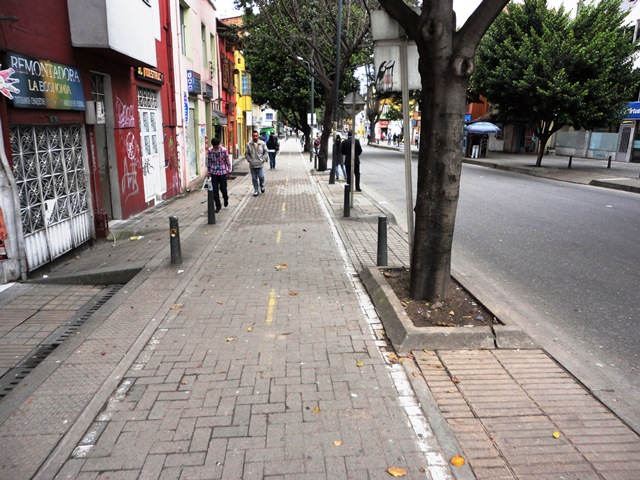 In Chapinero, it doesn’t matter if every citizen in Bogota is aware of the bike paths. There isn’t enough space. Street vendors steal half of the sidewalk and the tens of thousands of daily pedestrians take the rest. You just can’t haul ass down Carrera 13 during decent people’s working hours.