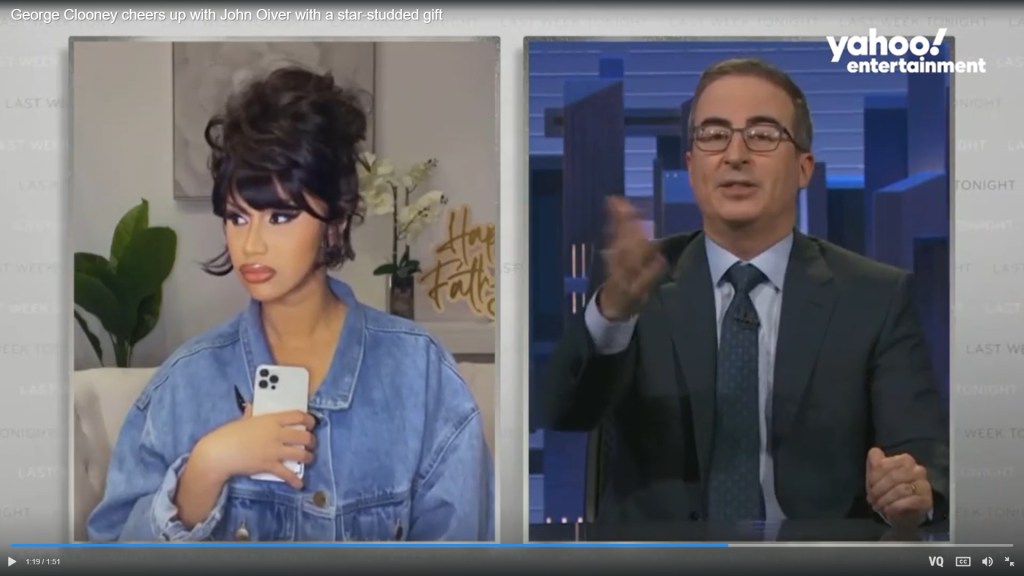 I would like to correct the record regarding the second subject of that Bad Bunny piece, who I disparagingly referred to as Cardi STD. I still don’t like her music, but she may have redeemed herself a little in a cameo she did on John Oliver. It was a funny bit, and I thought she looked nice. Dressed smart, not trashy. It reminded me of what my gay kid brother told me, “she has taste buds.” I wouldn’t have known. So there’s that.