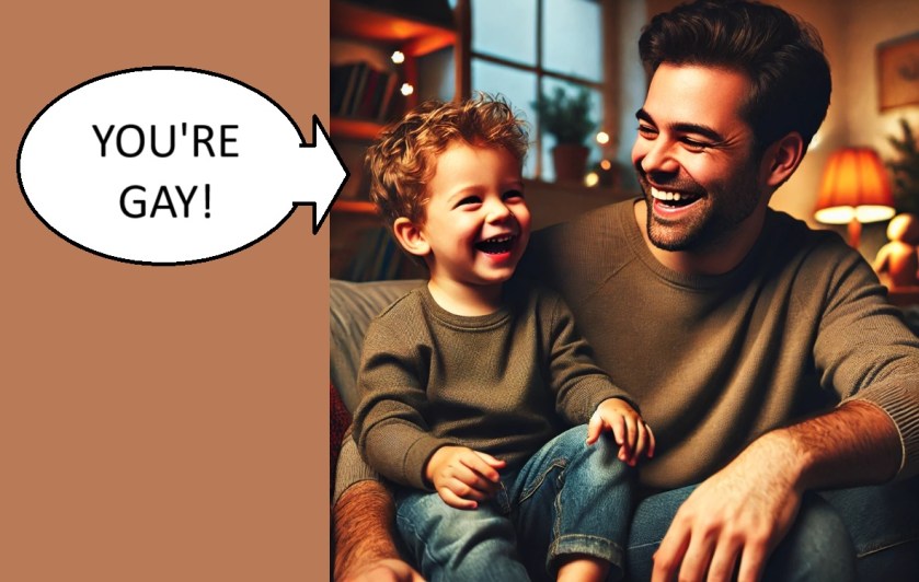 I called up my gay kid brother and asked about that. Is he aware that the youth of today still say that? He said it is, and it doesn’t bother him. He hangs out with his frat-boy cousin and pals, who say it all the time. He’s used to it, it’s not so bad. The word to avoid is “fag” or any other derogatory slurs that you know better to use in polite company. My son said the kids don’t say that one.