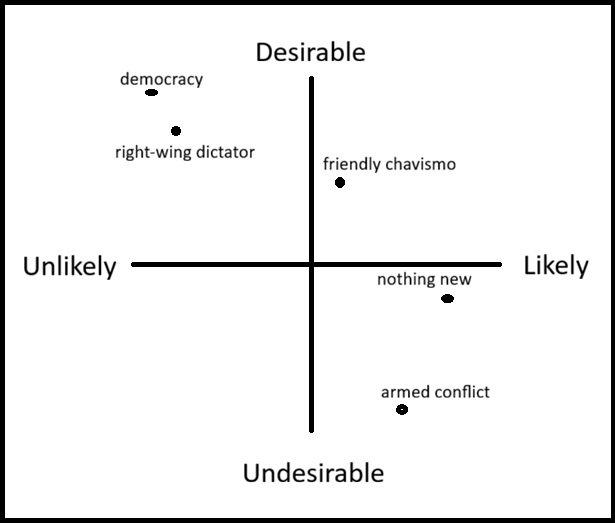 Our article on investing in post-Maduro Venezuela hinges on a key question: what comes next?Here are five possible outcomes and a handy infographic based on my subjective and unscientific take.